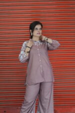 Step out in style with this bell-bottom style shirt coord set, designed for a chic and modern silhouette. Made from soft, comfortable fabric, the flared bottoms paired with a tailored shirt offer effortless elegance. Perfect for casual outings, office wear, or stylish day-to-day looks.