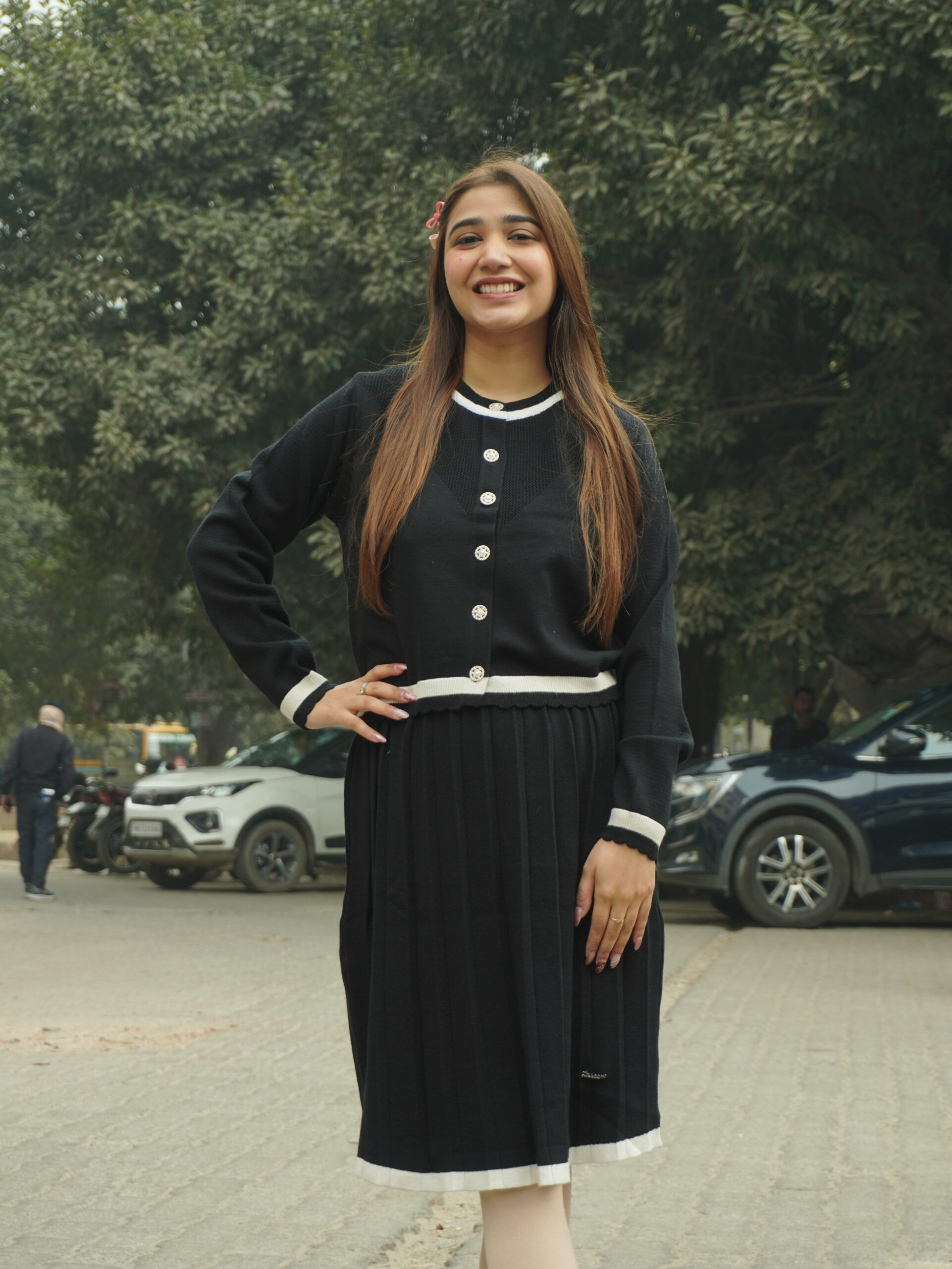 Embrace timeless winter elegance with our black skirt and top set. Made from warm, premium fabric, it ensures all-day comfort while keeping you cozy. The classic black hue adds sophistication and versatility, perfect for office wear, evening outings, or casual winter styling with boots and layers.