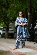 Add a touch of sophistication to your ethnic wardrobe with this dark blue printed suit set. Crafted from soft, comfortable fabric, it features elegant prints for a stylish yet effortless look. Perfect for casual outings, office wear, or festive gatherings.