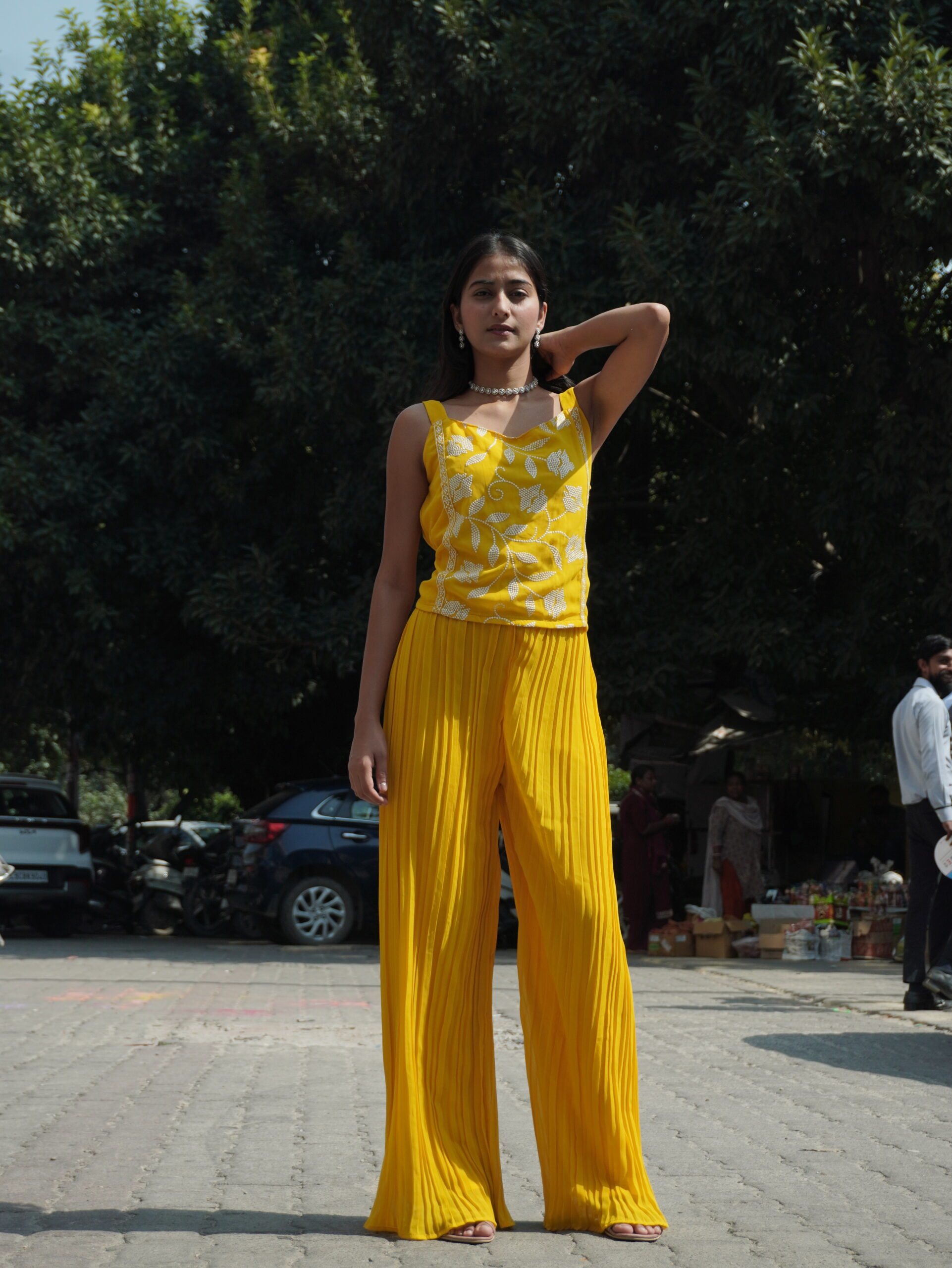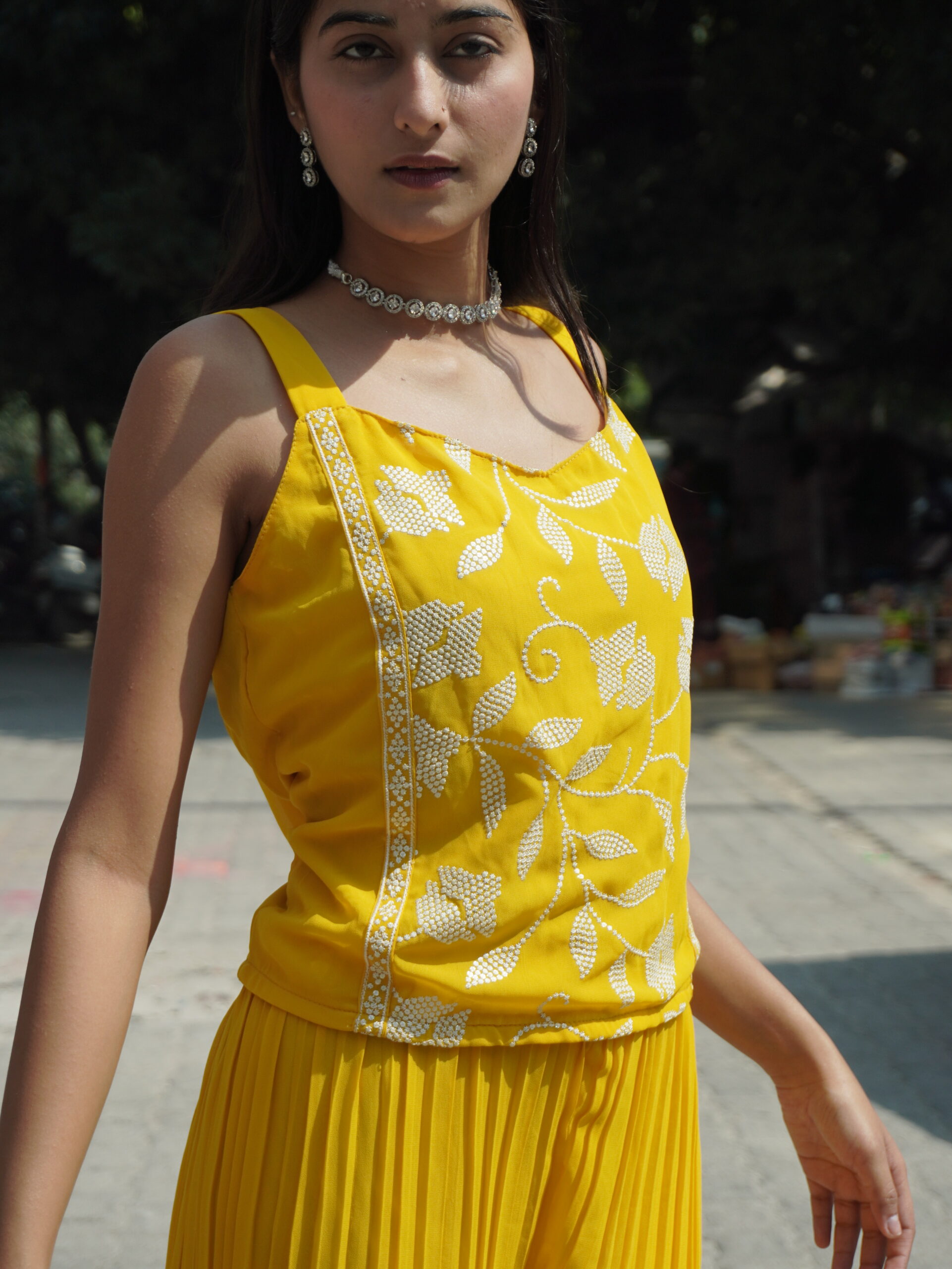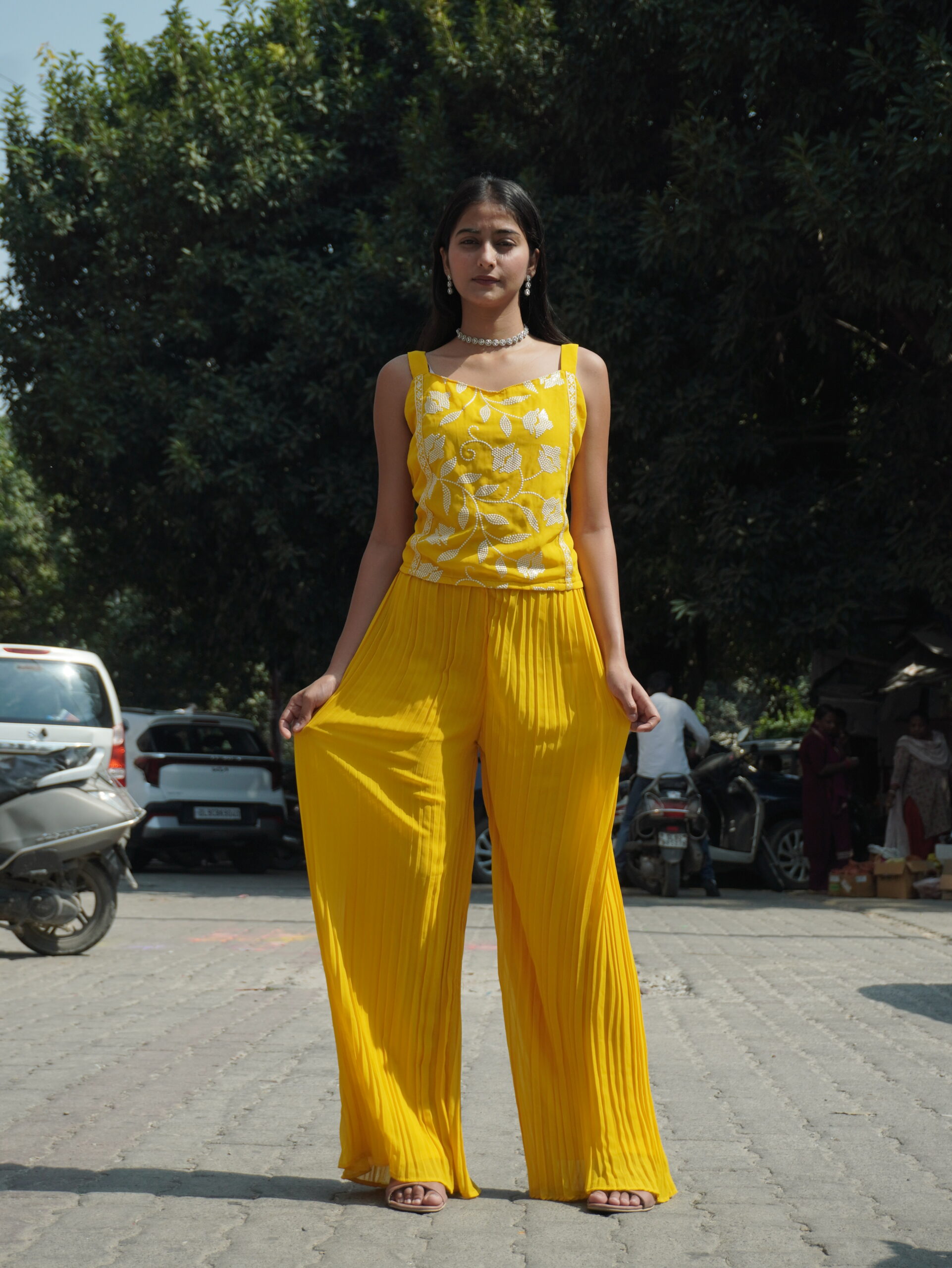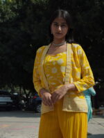 Celebrate your Haldi ceremony in style with this fancy ethnic set, crafted to add vibrance and charm to your special day. Featuring intricate detailing and bright, festive colors, it ensures a standout look while keeping you comfortable. Perfect for pre-wedding celebrations, family gatherings, or traditional rituals.