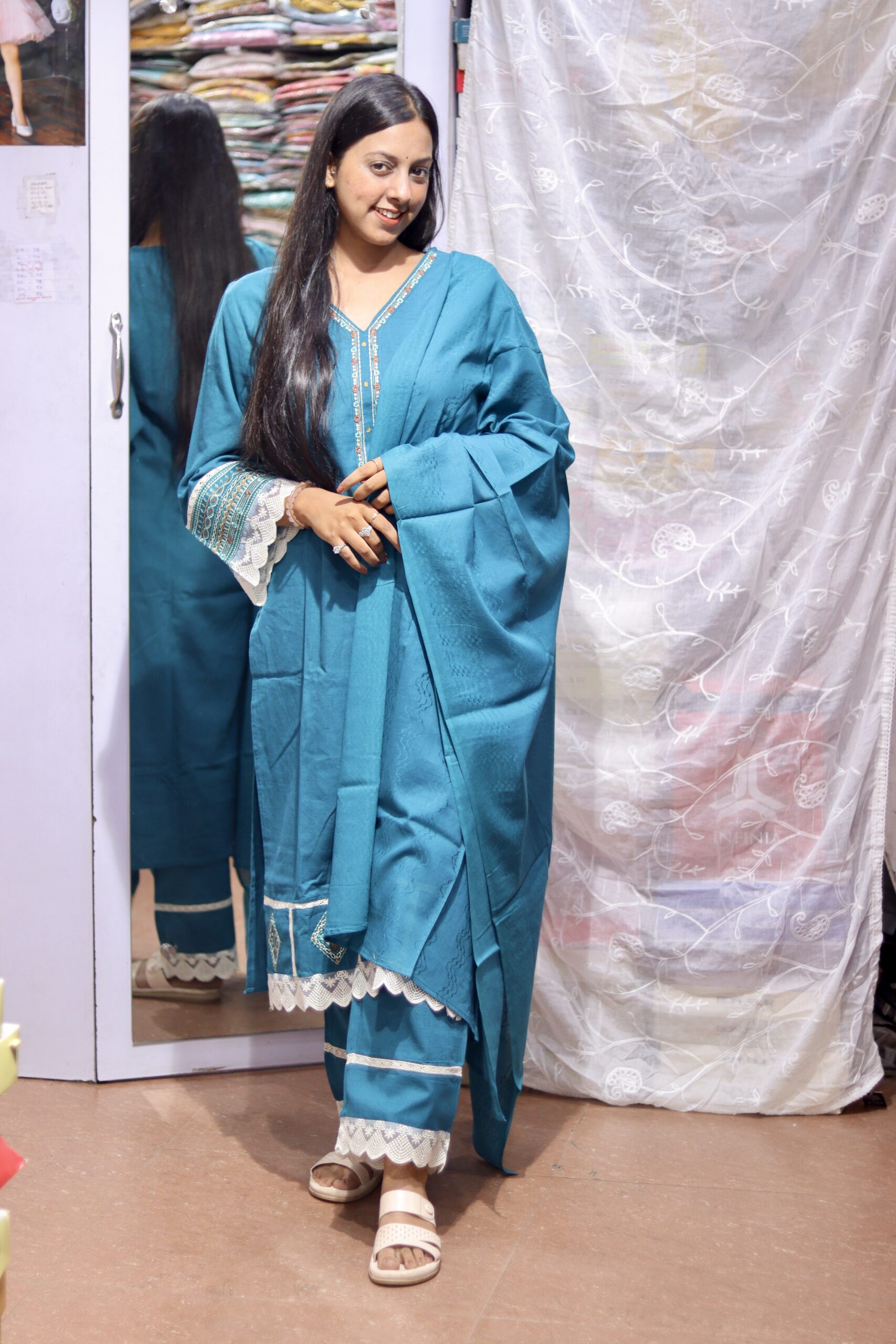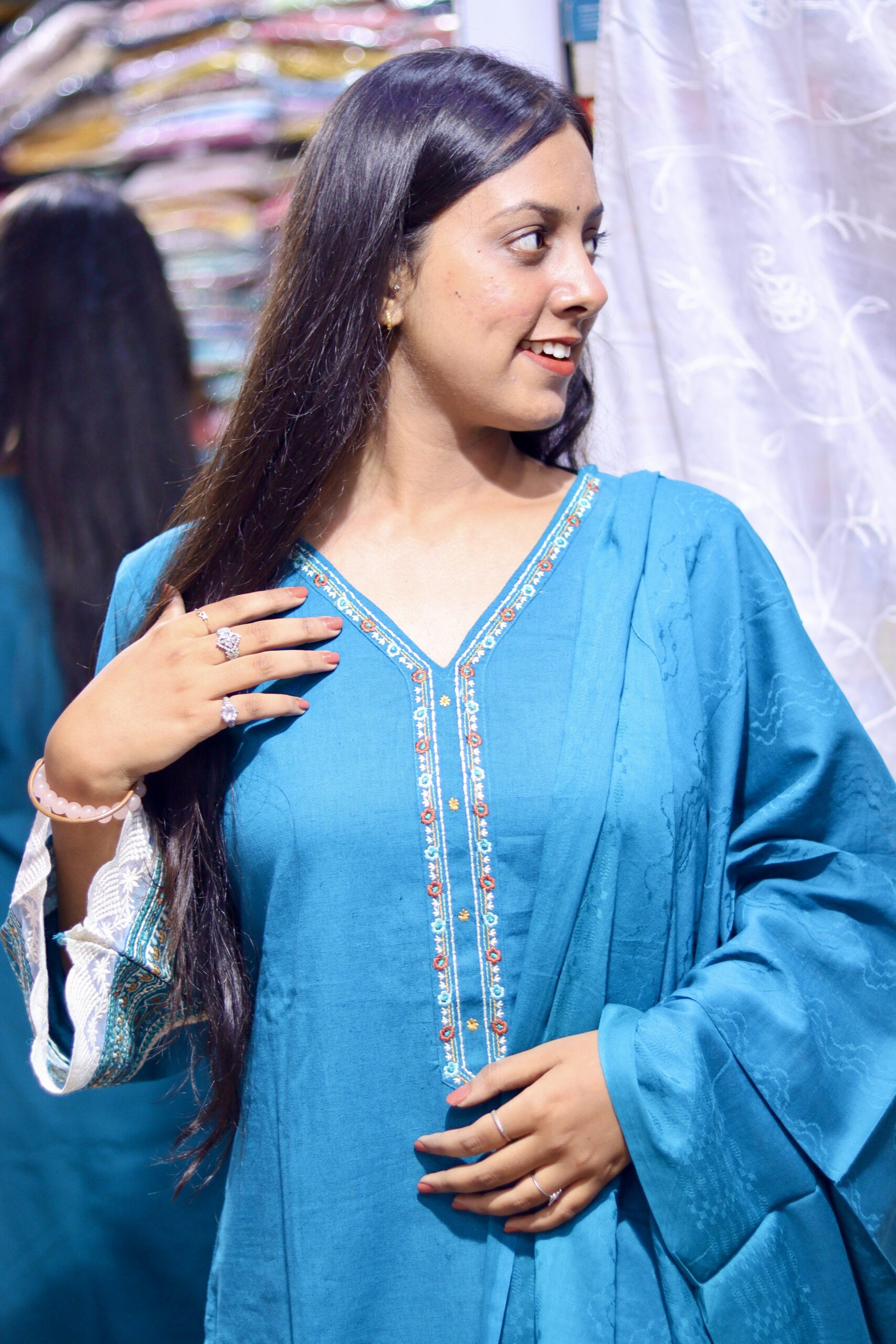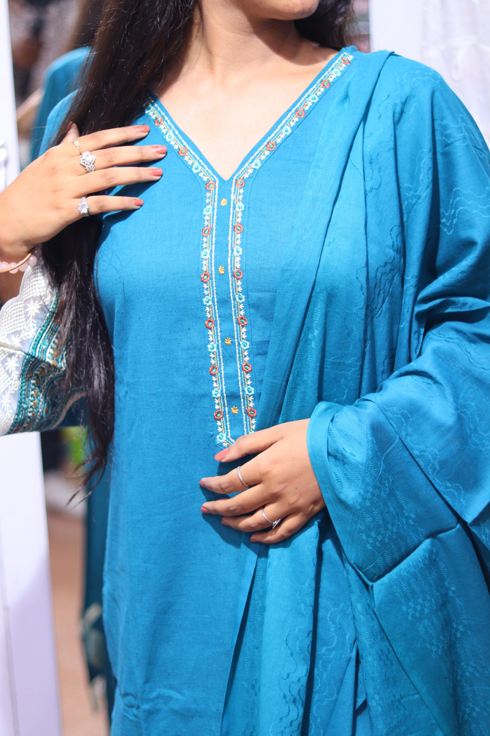 Step into effortless elegance with this V-neck flared sleeve kurta set, designed to flatter while keeping you comfortable. The graceful flared silhouette and breezy fabric drape beautifully, making it perfect for festive occasions, casual gatherings, or daily ethnic wear. Paired with matching bottoms (and dupatta if included), this set blends classic charm with contemporary style for a look that’s both polished and relaxed. Whether you’re dressing up for a celebration or embracing chic everyday style, this kurta set is a versatile wardrobe essential that transitions from day to evening with ease