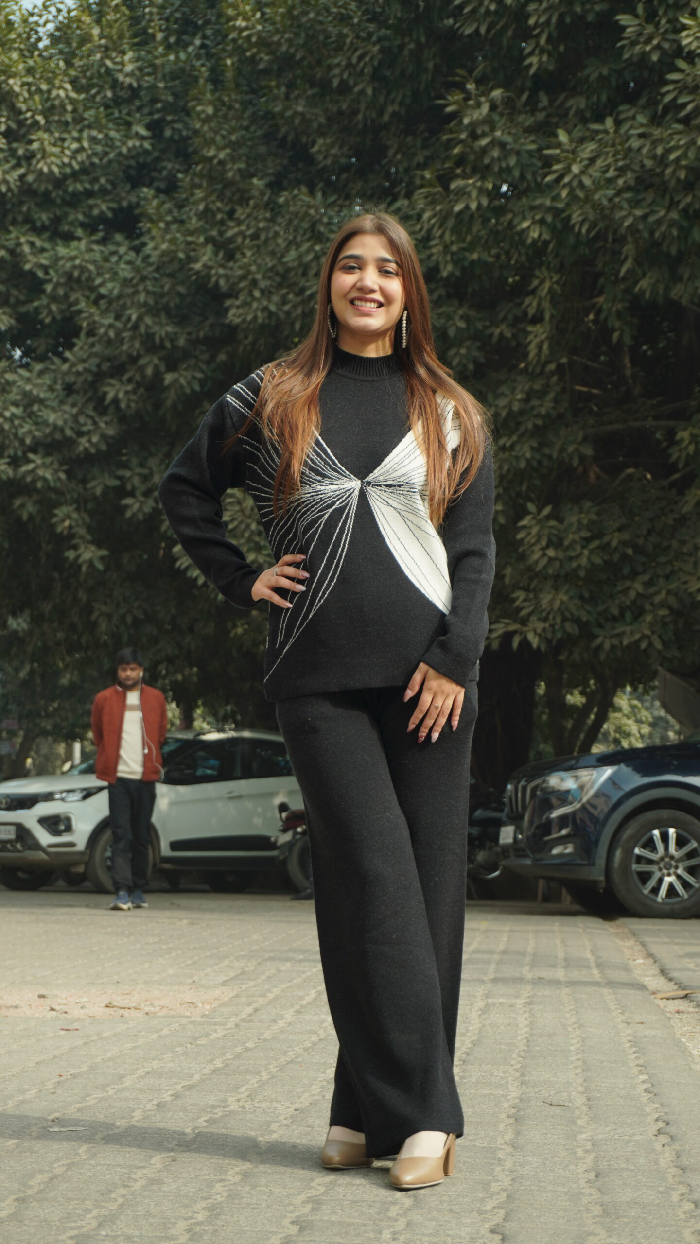 Stay effortlessly chic in this black woollen coord set, designed to keep you warm and comfortable all winter. Crafted from soft, premium fabric, it offers a sleek silhouette and timeless appeal, making it perfect for casual outings, travel days, or relaxed yet polished winter looks.